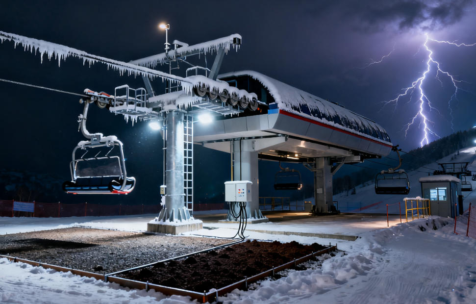 在张家口冬奥滑雪场的应用中,该系统保障了缆车控制系统、造雪设备、场馆照明的防雷安全。2025 年 1 月,当地遭遇 - 32℃极端低温与雷暴叠加天气,系统通过自动除冰装置清除接闪器上的 10cm 积雪,SPD 在低温下稳定泄放 3 次 15kA 雷电流,所有设备正常运行,未出现 1 次故障。对比试验显示,传统防雷设备在 - 30℃下的响应时间为 480 微秒,而该系统仅 80 微秒,远低于设备保护需求(200 微秒)。文中还提及技术的产业化应用:已形成 “严寒地区防雷设备” 系列产品,包括低温 SPD、除冰接闪器、低温接地网,适用于滑雪场、高寒铁路、极地科考站等场景;同时提供低温防雷安装建议:SPD 安装时预留 5cm 散热空间,接地引线采用耐寒电缆(耐温 - 40℃),接闪器除冰装置需与场馆供电系统联动(优先使用太阳能供电,减少能耗)。